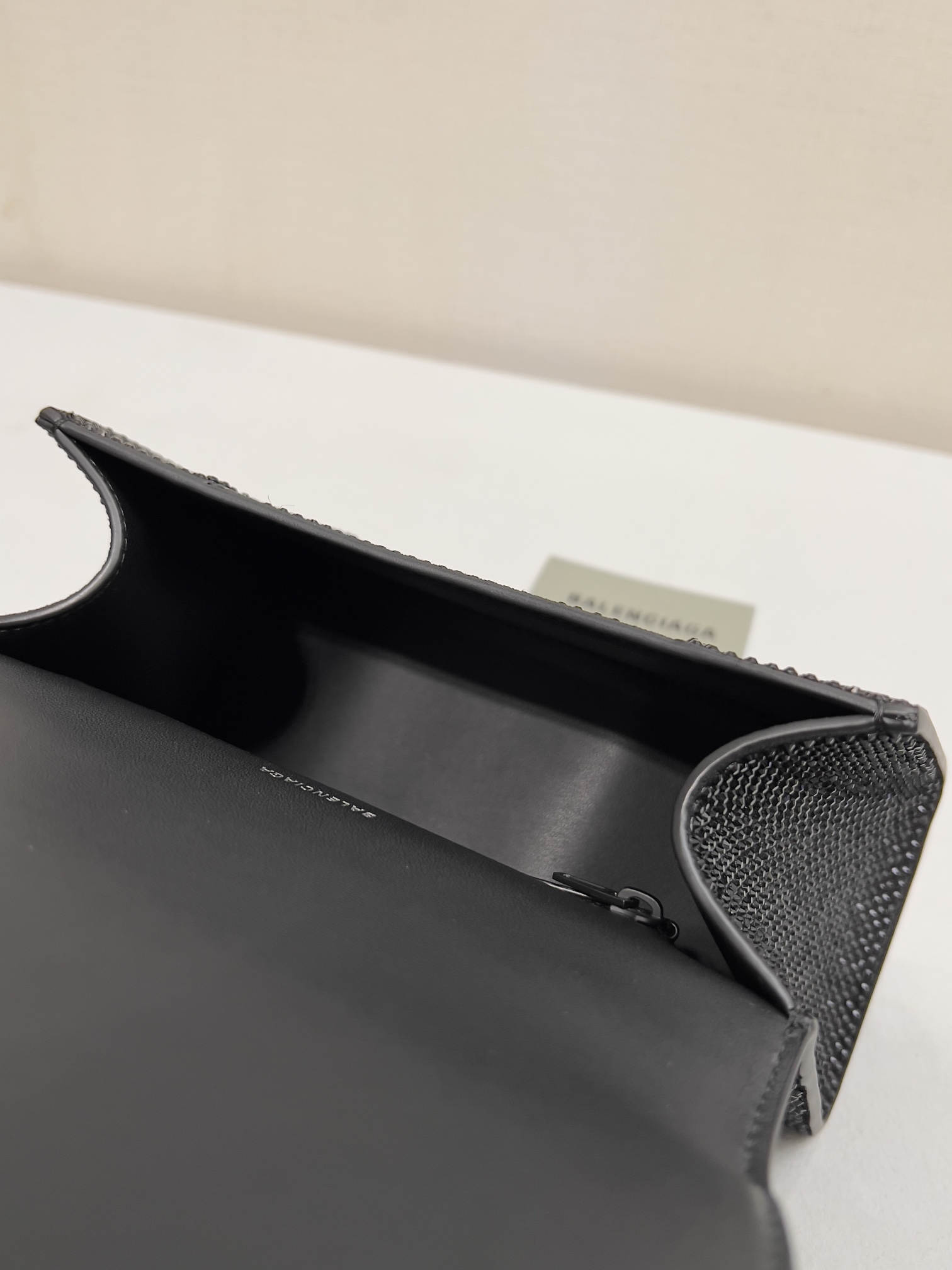 [True-to-ORIGINAL] Balenciaga Furry Hourglass Small Handbag With Rhinestones In Black For Women 24cm/9.4in