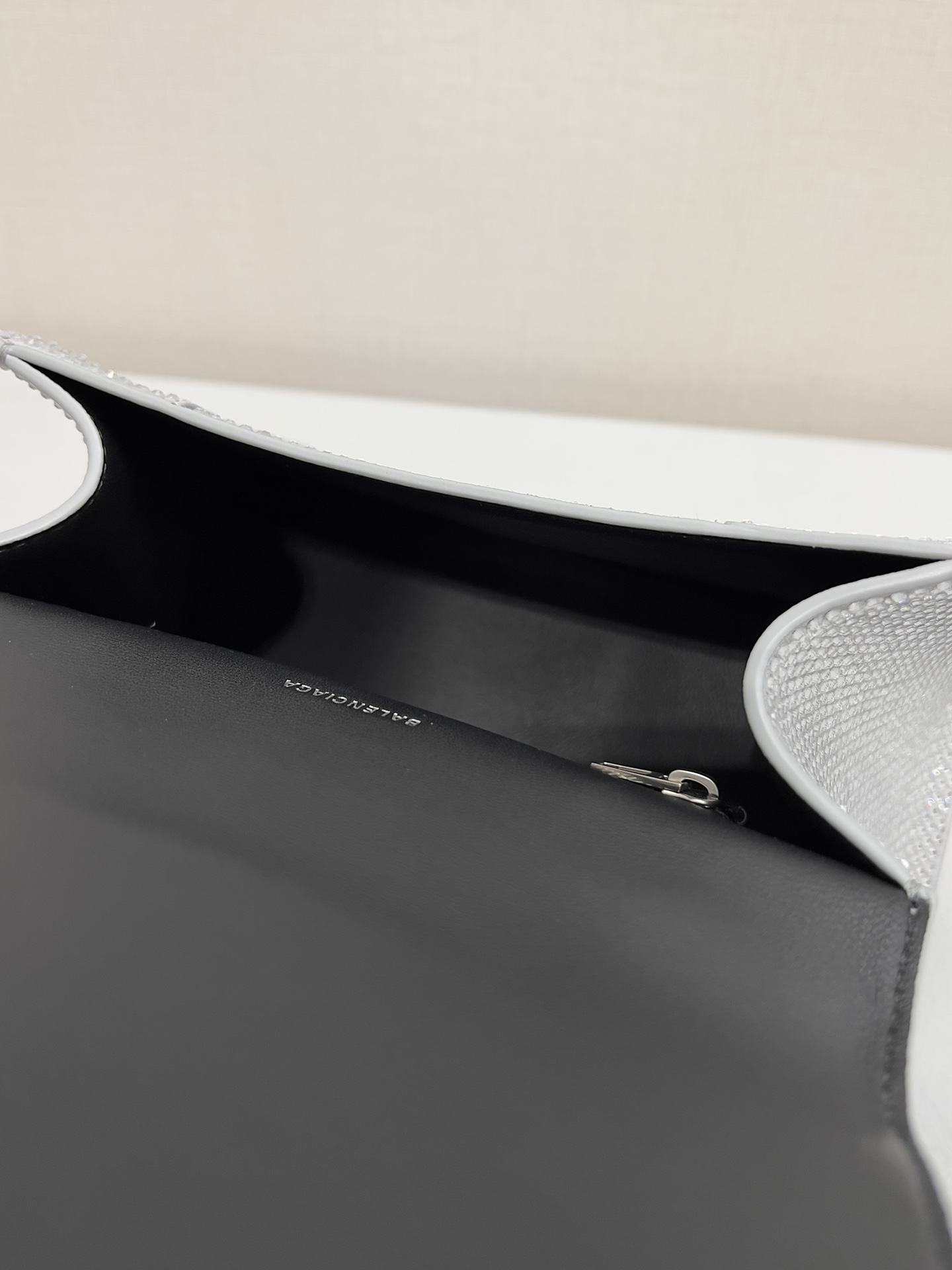 [True-to-ORIGINAL] Balenciaga Furry Hourglass Small Handbag With Rhinestones In Grey For Women 24cm/9.4in