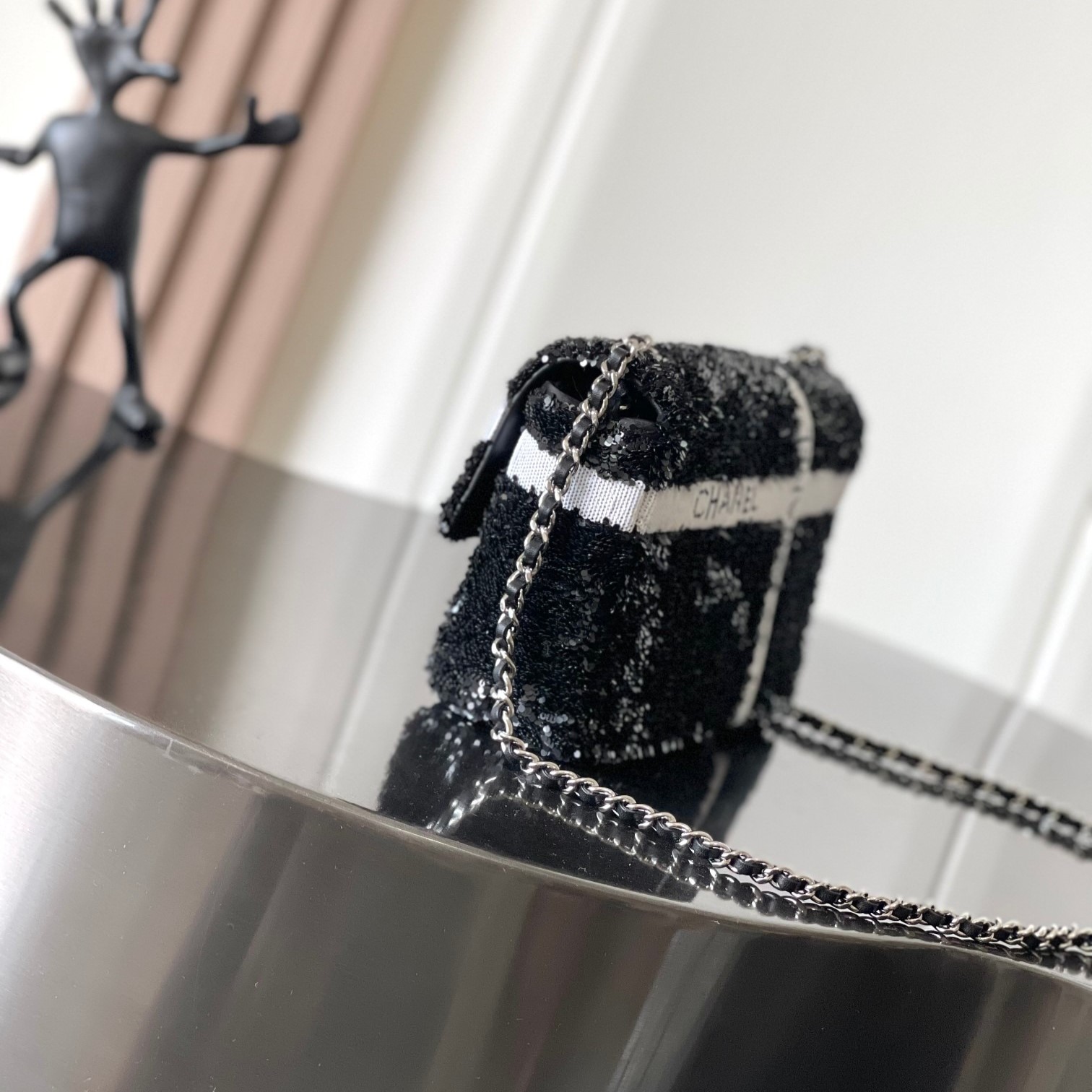 [True-to-ORIGINAL] Chanel Sequin Bow Mini Flap Bag Black