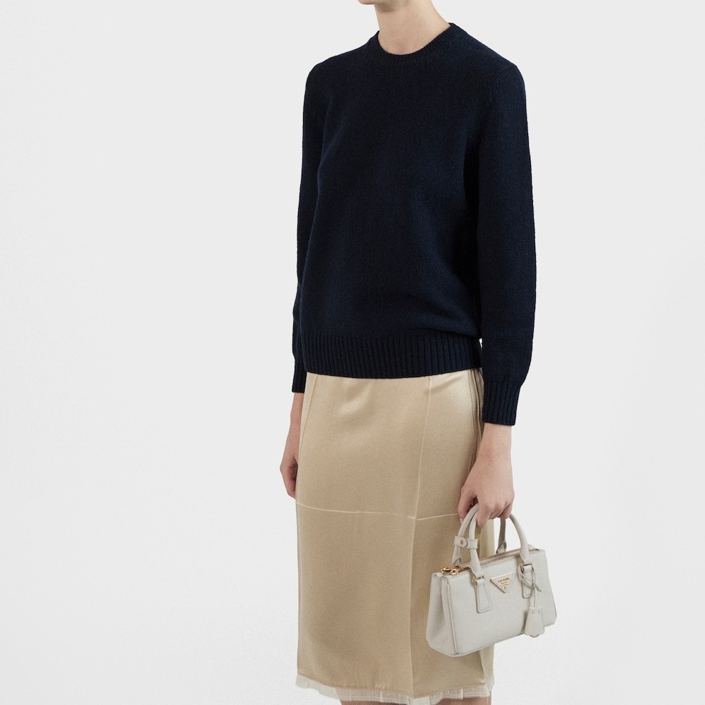 The Prada Galleria bag with an elegant, timeless design reflects the many facets of the Prada identity. The iconic style in a mini version with a new, elongated silhouette has a detachable shoulder strap for crossbody wear. The emblematic crosshatch texture of Saffiano leather gives the bag a distinctive, versatile character.